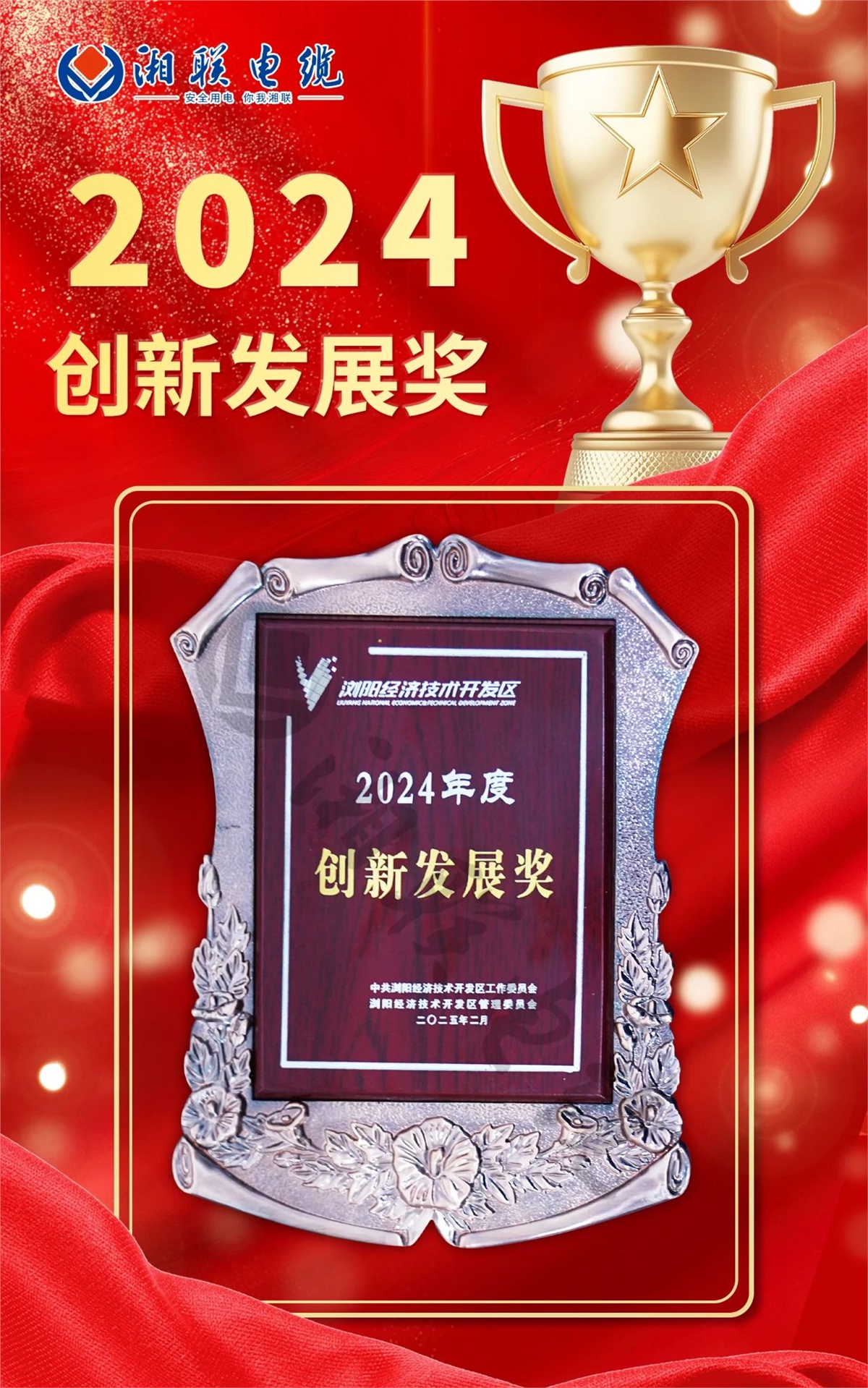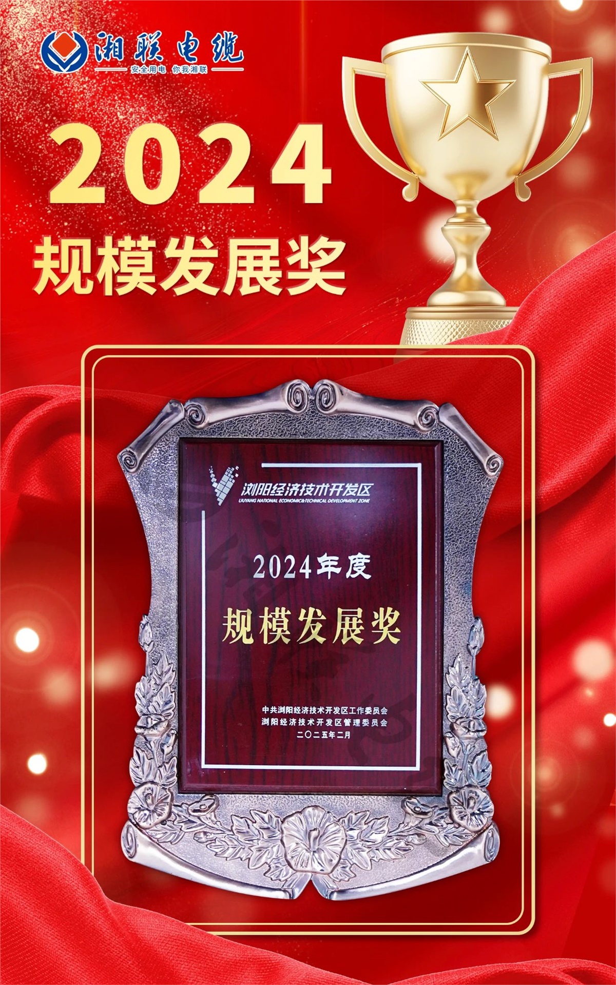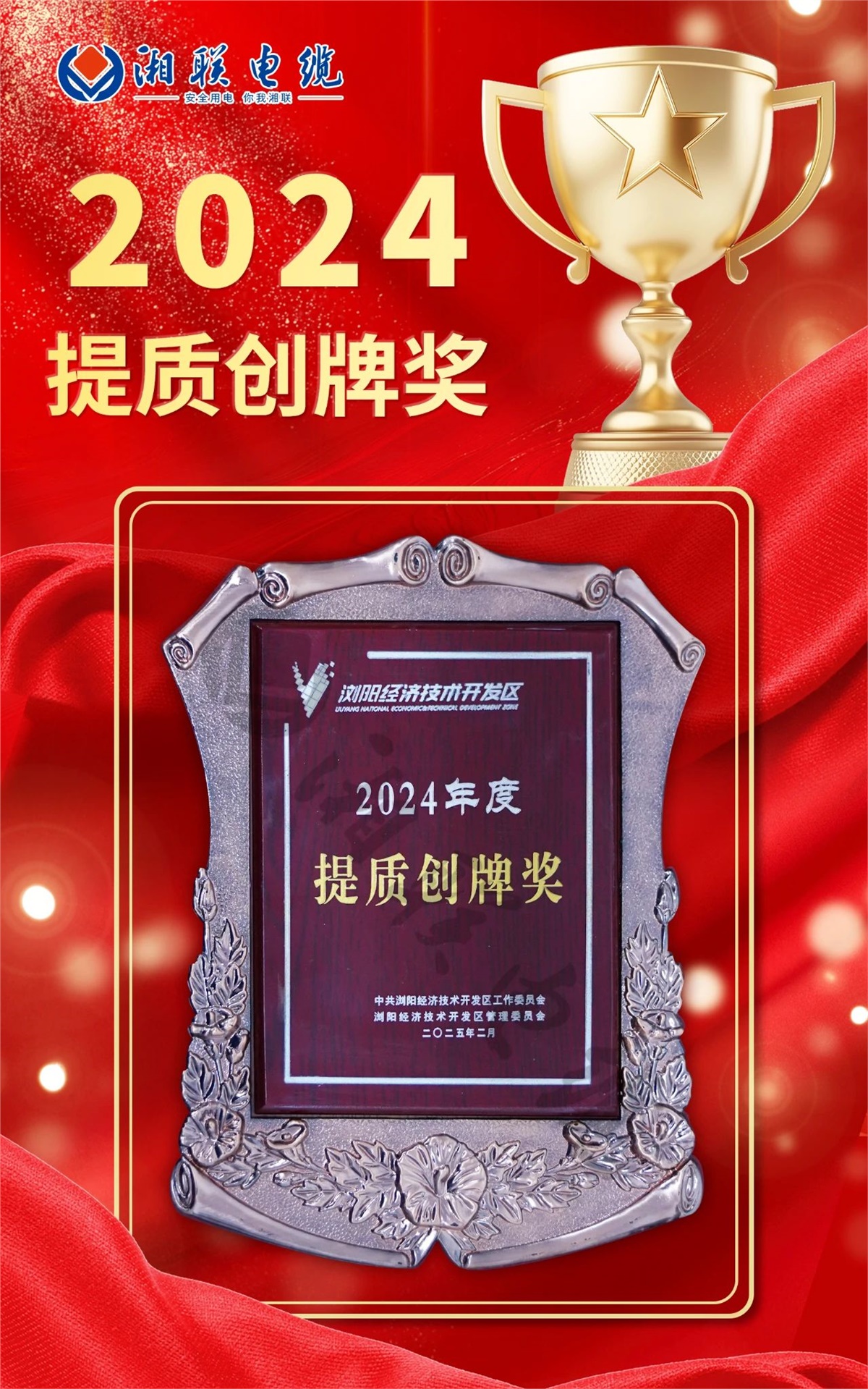 榮譽屬于過去,奮斗定義未來。2025年,湘聯電纜將再接再厲、奮勇前行,堅持以科技創新引領企業發展,深耕質量管理,持續打造企業競爭新優勢、培育企業發展新動能,努力在推動園區高質量發展中再創佳績。