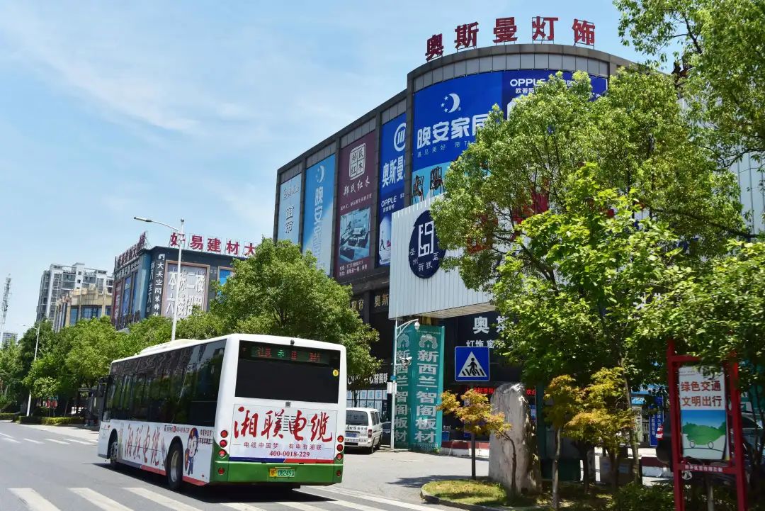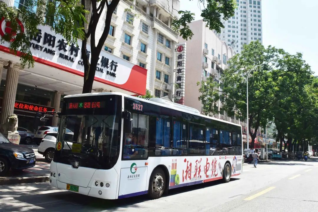 身披湘聯(lián)電纜廣告的公交車穿梭于