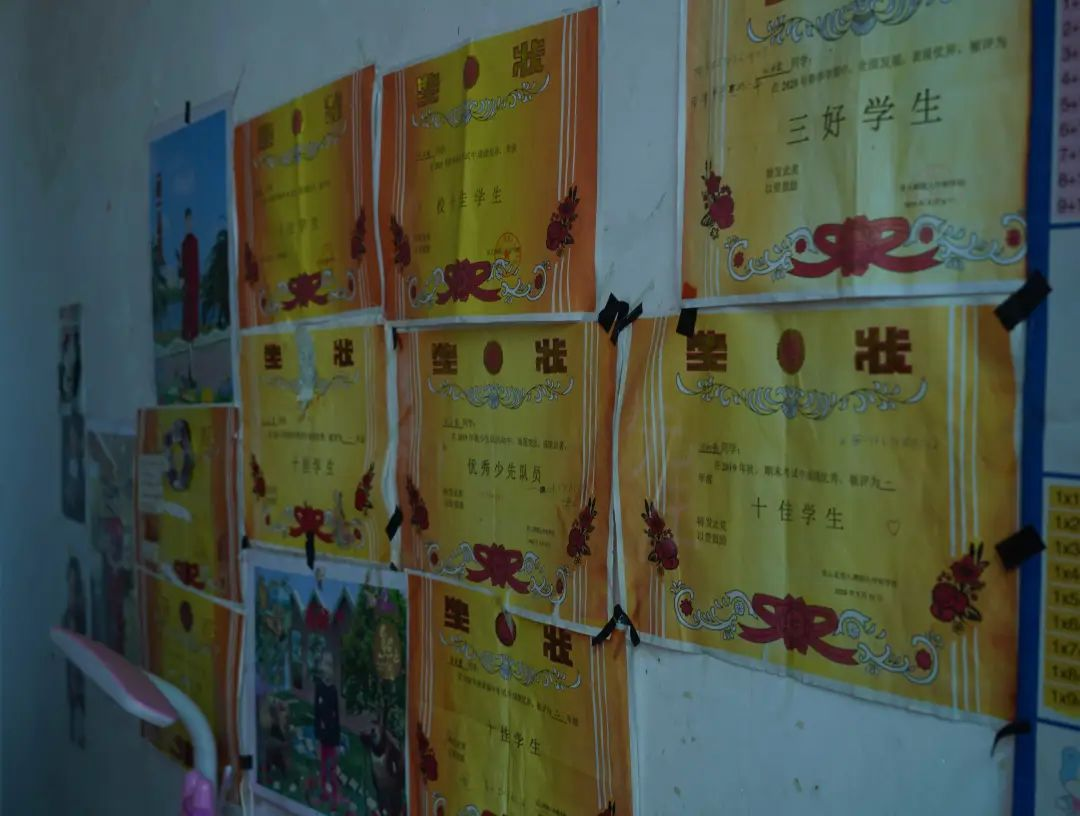 ▲被資助孩子在學校表現優異,獎狀貼滿墻