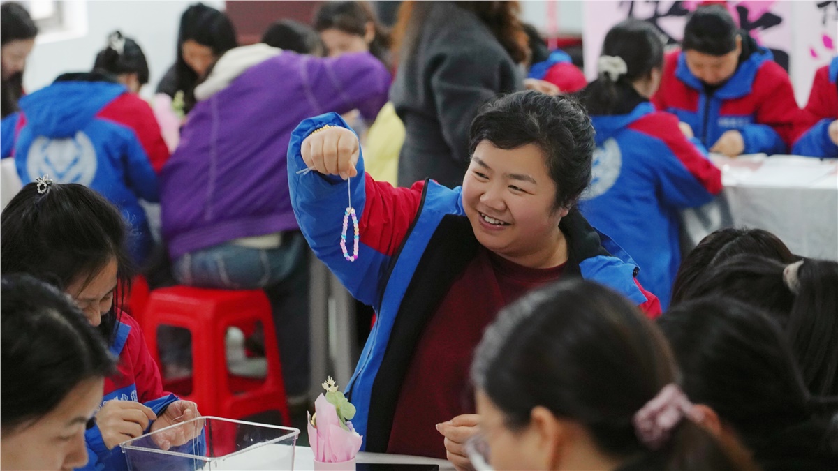 活動現場歡聲笑語不斷,大家互相交流、互相幫助,一顆顆散落的珠子,在巧手的穿引下,變成了一條條獨具匠心的手串,大家愉快地展示著自己的創作成果。