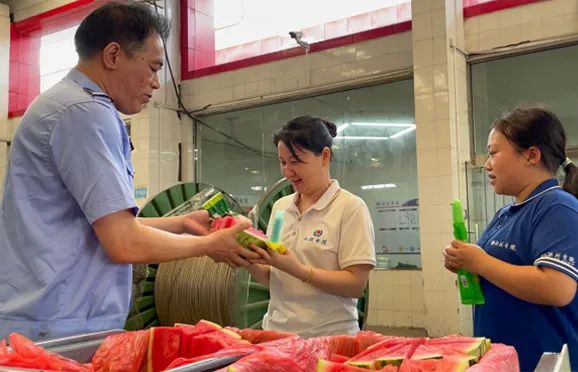 炎熱的午后,滿載西瓜和冰棒的小推車穿梭于湘聯電纜各個崗位一線,一塊塊紅彤彤的西瓜和一支支冰爽的冰棒順利分發到員工手中,大家臉上露出了燦爛的笑容,歡聲笑語回蕩在各個角落。