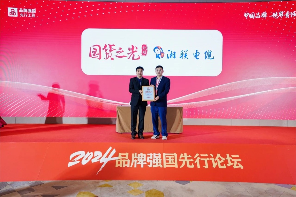 近日,以“凝聚先行力量,啟航星辰大海”為主題的2024第四屆品牌強國先行論壇在佛山三龍灣舉行,在此次論壇上,品牌強國先行工程國貨之光計劃全面啟動,憑借著消費者的良好口碑和行業內的高度認可,湘聯電纜成功入選品牌強國“國貨之光”培育工程。