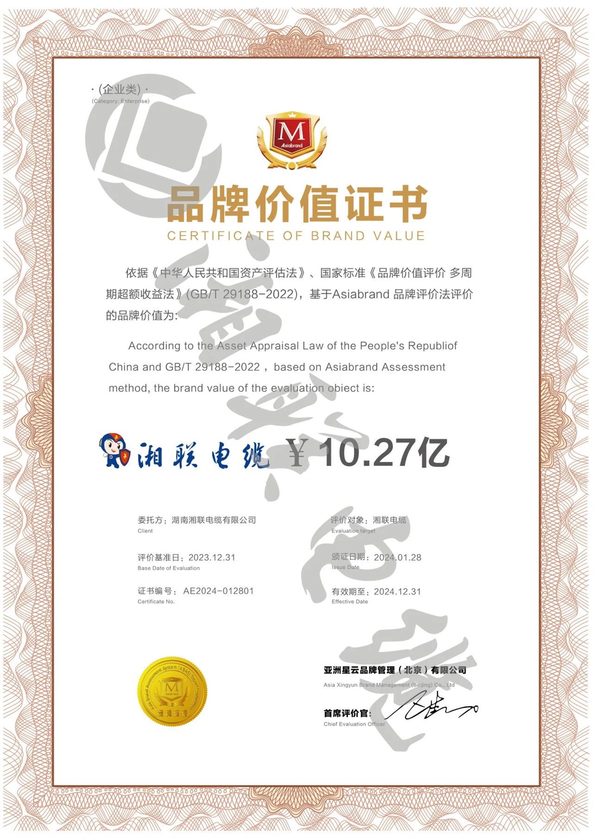 作為電線電纜智造行業的佼佼者,湘聯電纜在深耕產品品質、厚植服務質量的基礎上,同時以堅定的步伐在品牌建設的道路上始終保持著高速前行的發展態勢。在數字時代的浪潮中,湘聯電纜迅速完成線上自媒體平臺的布局矩陣;先后完成公交廣告,高鐵廣告和高速廣告的投放;并多次榮登央視、政法頻道等權威媒體,榮獲“品牌中國重點推薦品牌”“國貨之光”“湖南省知名品牌”等多項品牌榮譽,品牌估值10.27億,持續釋放品牌動能,以品牌力促進市場力的高效轉化。