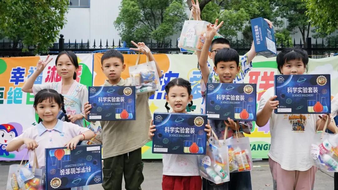 運(yùn)動(dòng)會(huì)后,小朋友們?cè)凇跋媛?lián)寶貝歡樂(lè)集市”領(lǐng)取了零食禮包和科普實(shí)驗(yàn)套裝,孩子們捧著禮物,臉上洋溢著滿足與幸福。